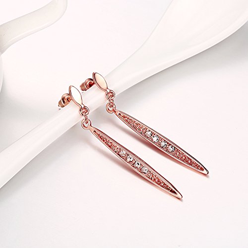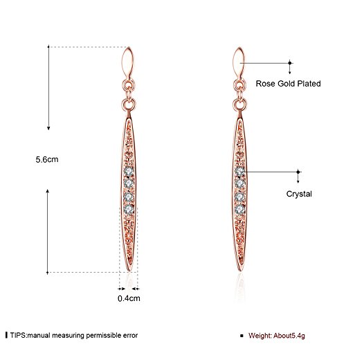 - Oval Drop Earrings plated platinum with crystal diamond. Weight 5.40 g, Lengh 2.20 inches, Width 0.16 inches.
