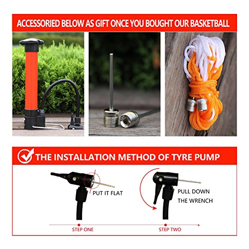 - Free gift: Once you bought our basketball, you can get a free Ball Maintenance Kit including a steel basketball pump, 2 needles plus a large basketball net