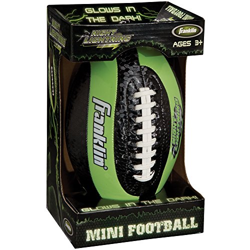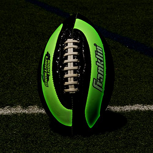 This fits your . Our Franklin Sports Night Lightning Football has high visibility neon green panels that glow in the dark. The cover combines glow in the dark PVC with a high tack cage mesh for extra grip. It also has a long lasting air retention bladder. Great fun night and day! |