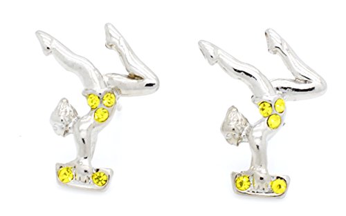 This fits your . These beautiful gymnast earrings represent a girl on the beam doing the stag pose. The earrings are adorned with sparkling crystals on the front side. The earrings measure 1/2" tall and are post style (we also have dangle style available). They are rhodium plated making them resistant to tarnishing and great for sensitive ears. We also have the matching necklace! We design and manufacture this item so it is unique to our company. |