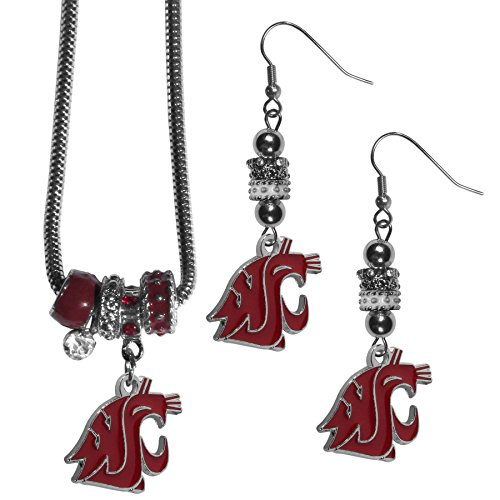 This must-have look features the wildly popular Euro bead style teamed with eye catching team charms. The 18 inch, snake chain necklace is paired with delicate matching earrings with hypoallergenic, steel fishhook posts.