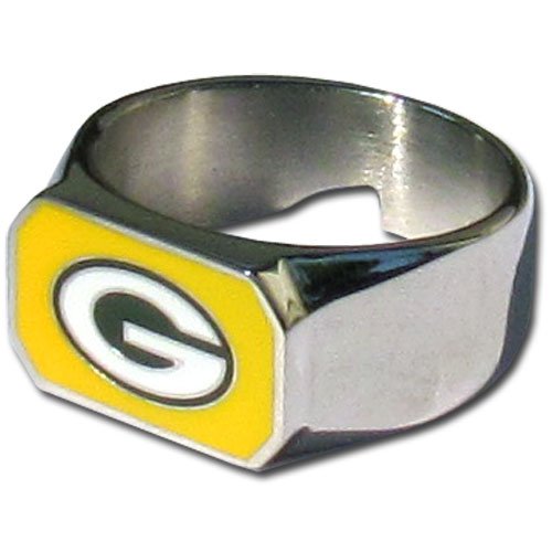 This unique ring is made of 316L stainless steel and features a fully cast and enameled team logo. In addition to the attractive look of this ring it also includes a functional bottle opener feature. |