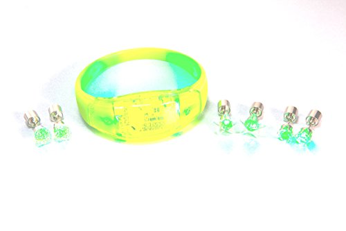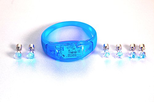 Each package contains: 3 steady-light post earrings and 1 noise-activated bangle wristband -all color-cordinated!