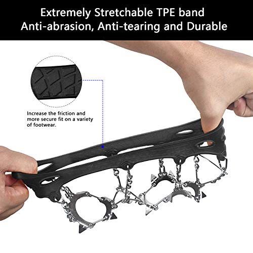 - Lighter and tougher, it helps to deliver unrivaled traction on icy winter trails. The main body of elastomer band is comprised of stretchy Thermoplastic Elastomer (TPE) which is of flexibility, anti-abrasion as well as anti-tearing and could improve longevity for a quick and secure fit on a variety of footwear.