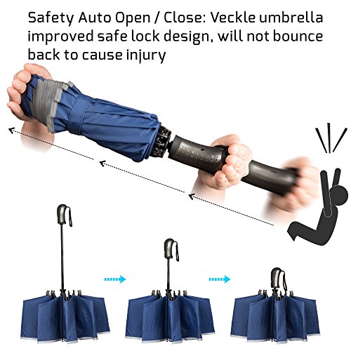 - ☂Safety Auto Open / Close: Automatic open and close just need to press the button on the handle, Veckle umbrella improved safe lock design, will not bounce back to cause injury